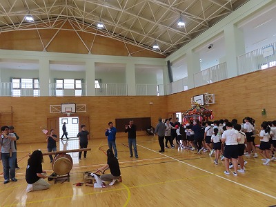 地域の囃子連の方達にご協力をいただき、たるみこしの担ぎ方や担ぎ手の交代の仕方などを練習しました。本番は10月19日(日)です。