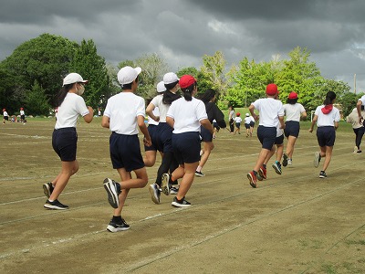 今年のマラソン記録会はコース及び距離について、安全確保とお子さん一人一人の努力や成長が見とれる方法に変更しました。