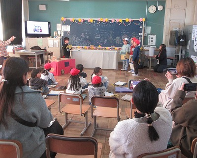 12月11日(木)に、仁組獅子舞鑑賞会を行いました。4年生の学習の一環として、全校で獅子舞の演舞を鑑賞しました。
