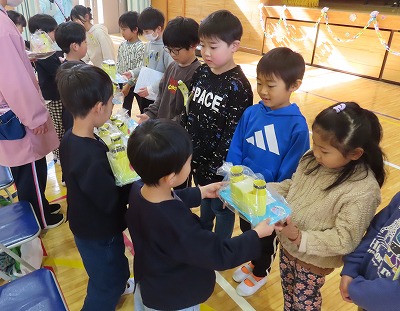 その後、2年生がリーダーとなり、1年生とグループを組んで園内を見学して回りました。間近にライオンやキリン等の動物が現れると「大きい!!」等の歓声があがっていました。