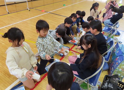 動物公園では、最初にテンジクネズミとウサギとのふれあいを行いました。実際に触れることで、手の平から動物の体温や息づかいが伝わり、「命」を感じることができました。